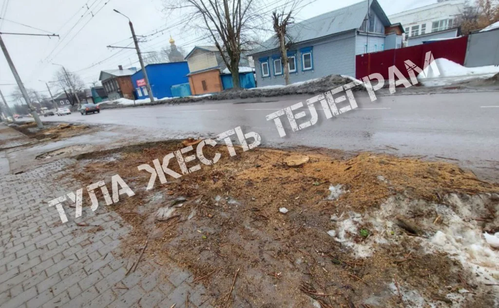Тревогу несколько дней назад забили в соцсетях местные жители, разместив фото с вопросом, кому помешали росшие тут деревья вдоль улицы Луначарского в Туле на газоне от Комсомольской до улицы Герцена.