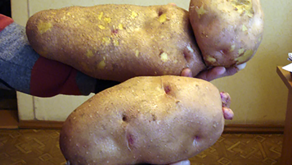 - картофелину весом в 2 кг 350 грамм. Помимо нее у огородника есть экземпляры весом 1460 и 1210 грамм, сообщает tulasmi.ru. Мужчина рассказал, что в качестве удобрения использует органику*.