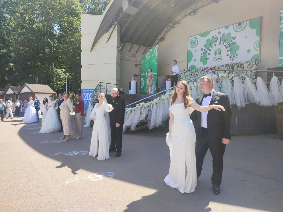 В День семьи, любви и верности в Центральном парке Тулы поженились сразу шесть пар