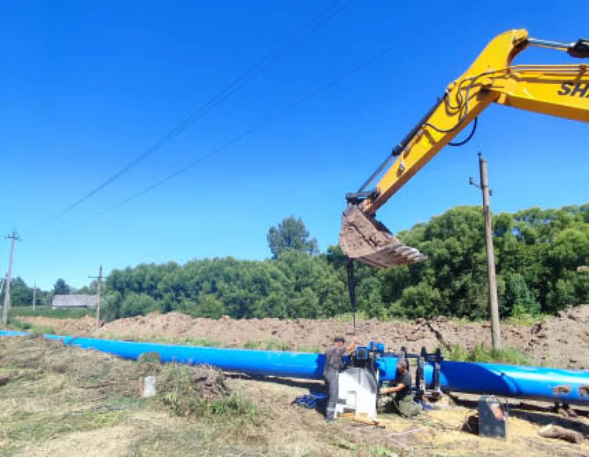 водовода 1-го подъема протяженностью 8,2 км. Трубы диаметром 700 мм укладывают местного производителя от новомосковского