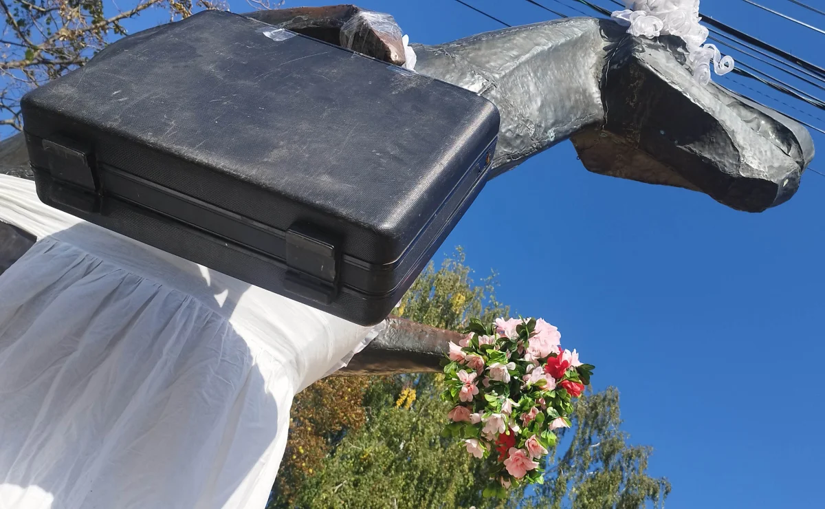 Традиционно приоделась в школьную форму бронзовая тульская «теща»