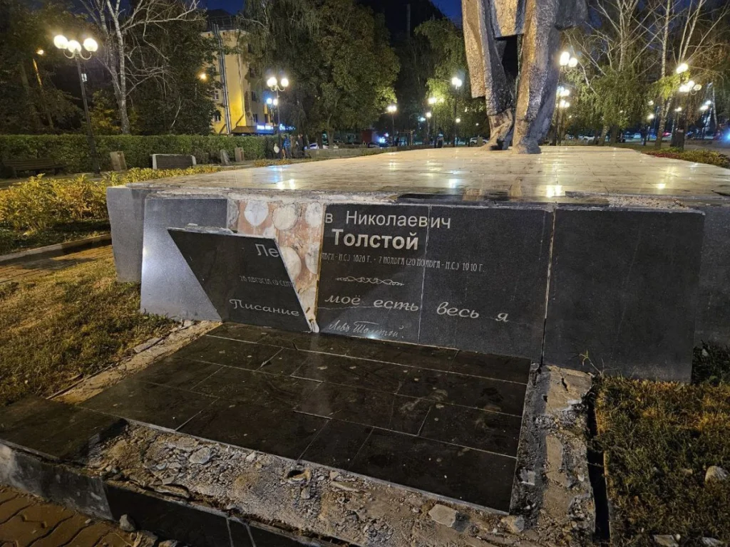 Накануне очередного дня рождения пистеля у памятника Льву Толстому в Туле откололись плиты