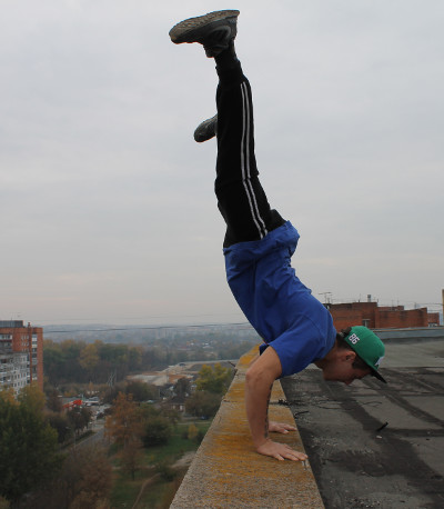 - Был. Я на руках свисал с крыши, хотел в стойку выйти. Но меня начало клонить назад, в обратную сторону. Еое-как удержался. Как ни странно, не испугался. Все равно с новой попытки выполнил трюк.