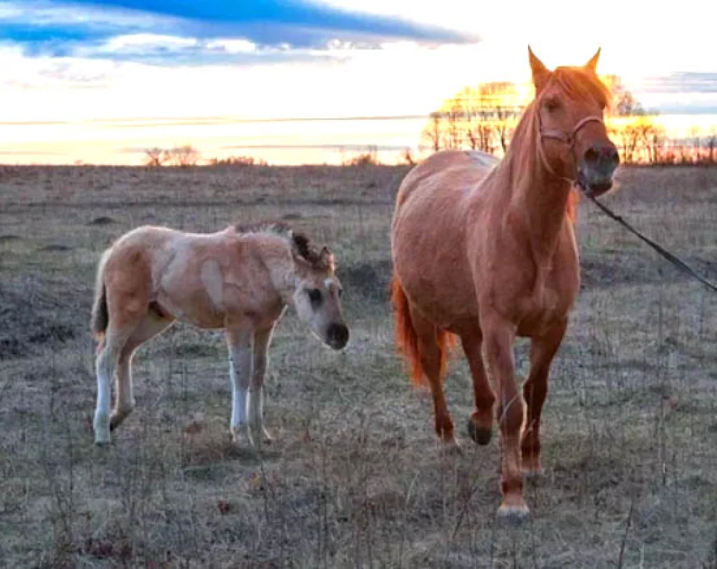 Куполёк - первый жеребенок, родившийся в конюшне Куликова поля за последние пять лет. Его родители - Коломбина