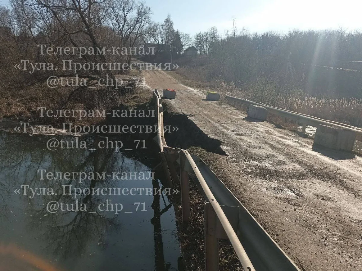 В селе Борятино Воловского района Тульской области из-за частичного обрушения конструкции перекрыли аварийный мост. Его длина составляет около 25 метров.