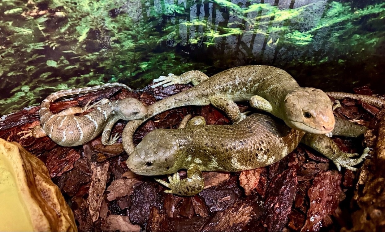 Еще одно пополнение случилось у пары цепкохвостых сцинков. Маму и детеныша можно найти на старой экспозиции зоопарка.