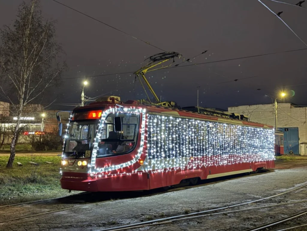 Особо ярко выделяются девять единиц подвижного состава — по три трамвая, троллейбуса и автобуса. На их бортах размещены яркие гирлянды, создающие эффект праздничной иллюминации в вечернее время.