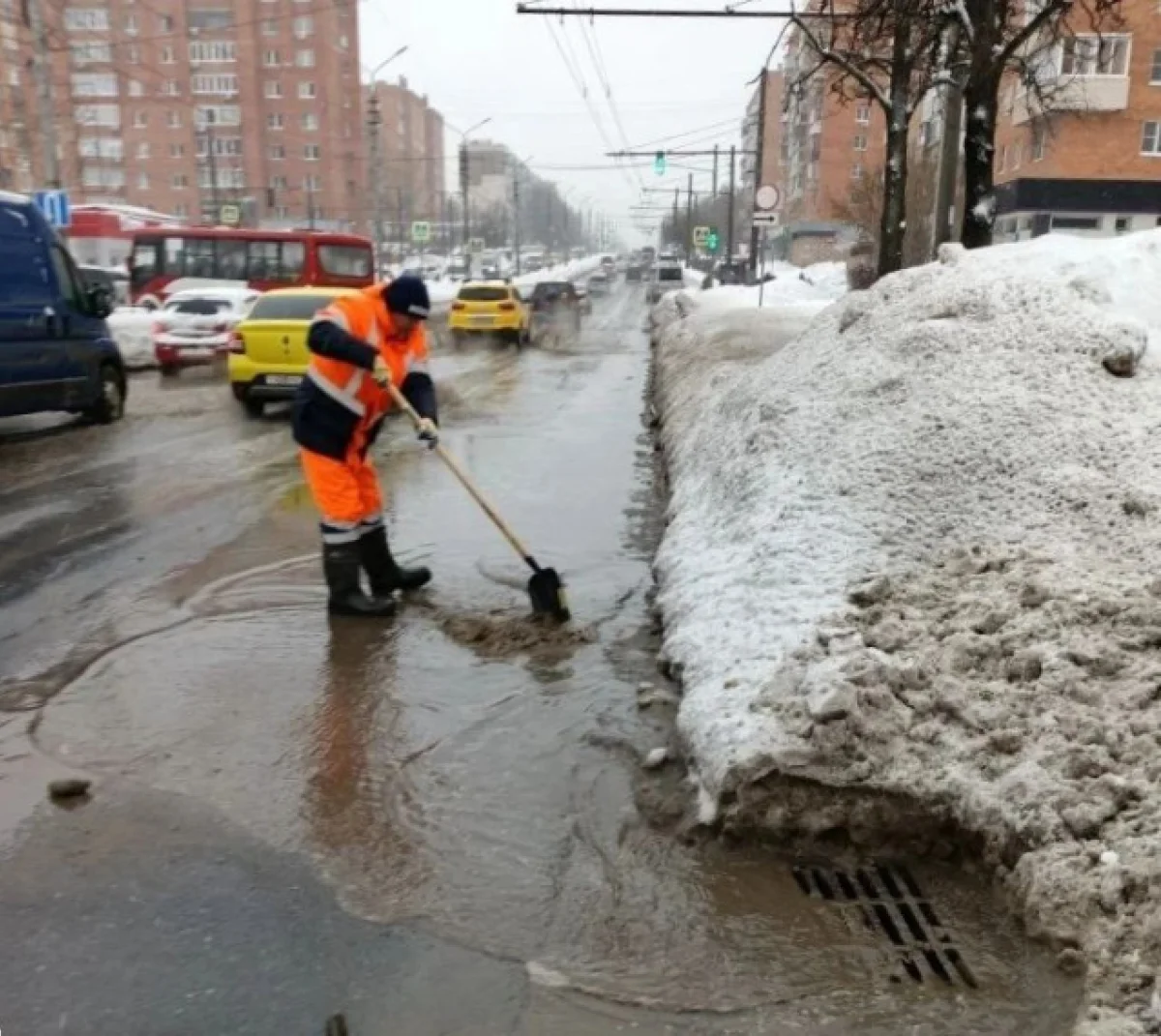 Весенняя оттепель: коммунальщики откачивают талую воду с улиц Тулы
