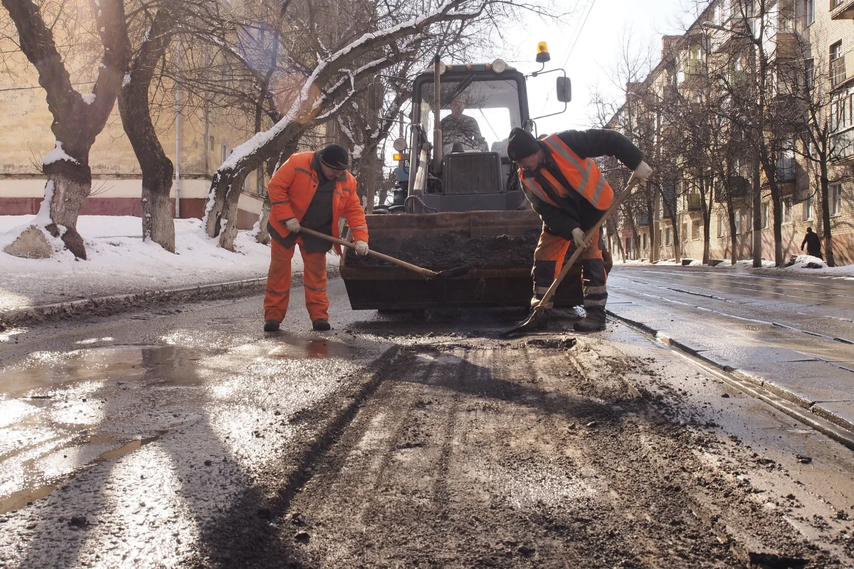 При планировании ремонта особое внимание уделяется участкам, по которым курсирует общественный транспорт. Для работ используется литой асфальтобетон — технология, позволяющая качественно заделывать повреждения даже при остаточной влажности: перед укладкой места ям тщательно осушаются, а высокая температура смеси обеспечивает прочное сцепление.