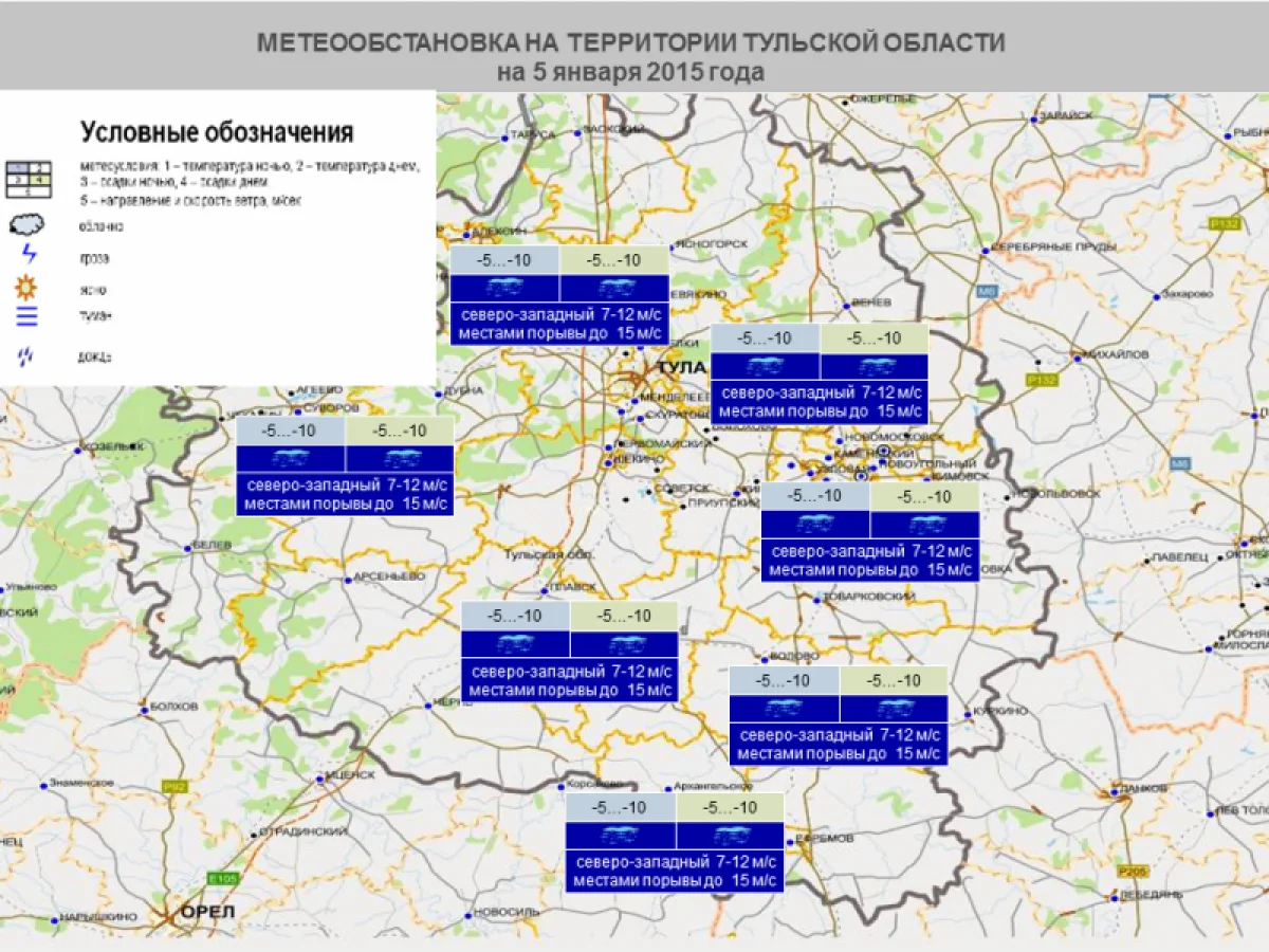 Управление МЧС России по Тульской области, в связи с ухудшением погоды, установили на федеральных автодорогах девять