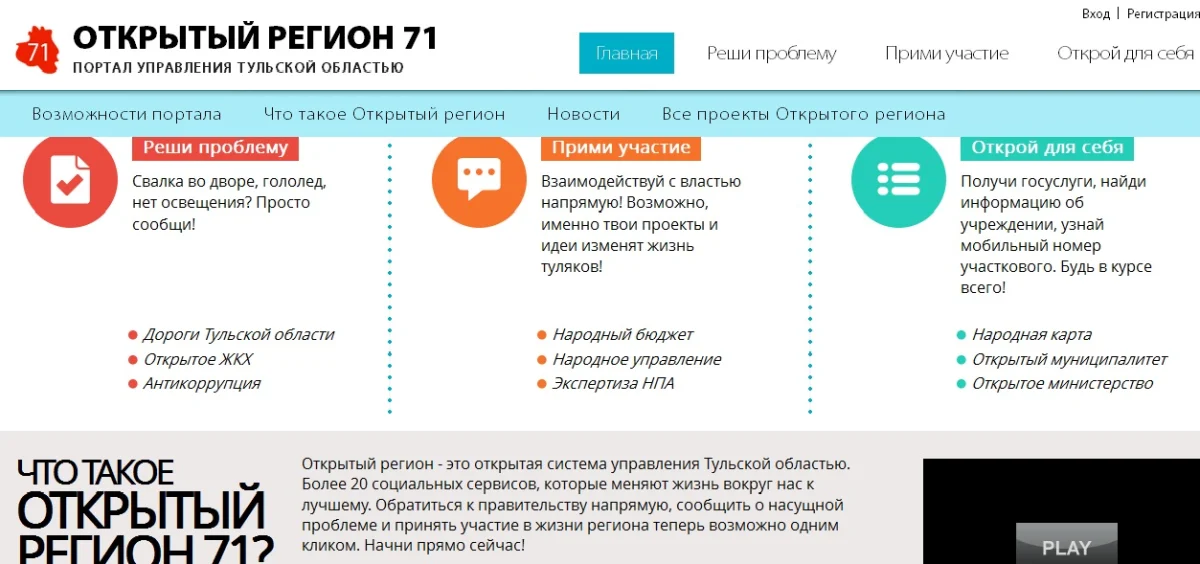 Артур Контрабаев, министр по информатизации, связи и вопросам открытого управления Тульской области: «Мы проанализировали поступившие предложения от жителей по дополнению классификатора «Открытого региона», отобрав наиболее популярные. В результате портал пополнился 13 новыми категориями вопросов. О них можно сообщить через сайт, мобильное приложение, а также по номеру 8-800-200-71-02, получив решение проблемы за 10 дней с подтверждающей фотографией. Если тематика поступившего обращения не подходит ни под одну из имеющихся на сайте классификаций, вопрос передается в электронную приемную правительства для рассмотрения в порядке, предусмотренном законом об обращении граждан».