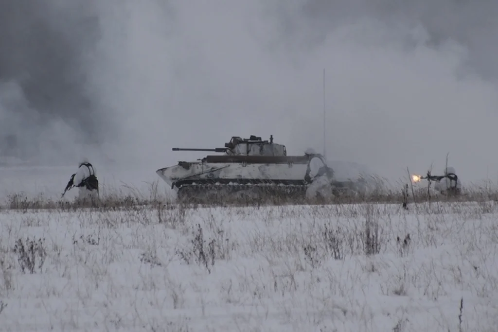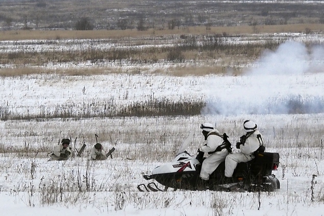 3. Эпизод учебного боя. Тульские десантники на снегоходах атакуют «вражескую» минометную батарею.
