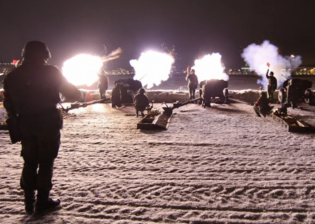 6 залп – за жителей блокадного Ленинграда;