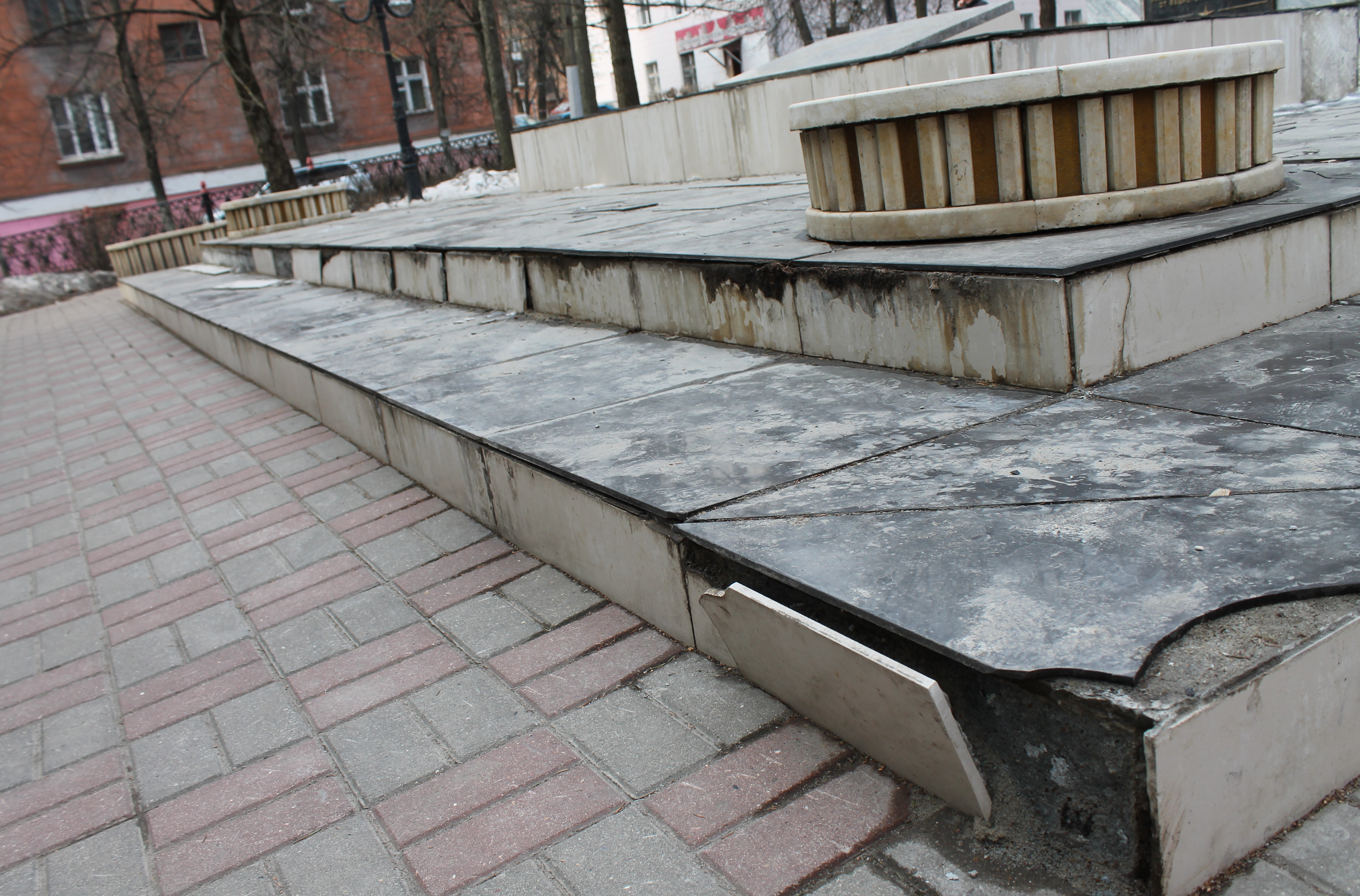 «Менее двух лет назад была заменена облицовка плитки на постаменте. Сейчас эта плитка вся полопалась. Из привокзальной администрации меня переадресовали в поселковую, где ответили, что у них нет документации и они не могут сказать, кто производил работы и виноват в браке. В администрации поселка обвиняют местных жителей. Но виноватыми правильнее было бы считать коммунальщиков и технику Спецавтохозяйства. Я считаю, что причина – в габаритах плитки: большая площадь и малая толщина. Она годна только в помещении. За плохо выполненную работу кто-то должен ответить», – отметил в своем обращении житель поселка.