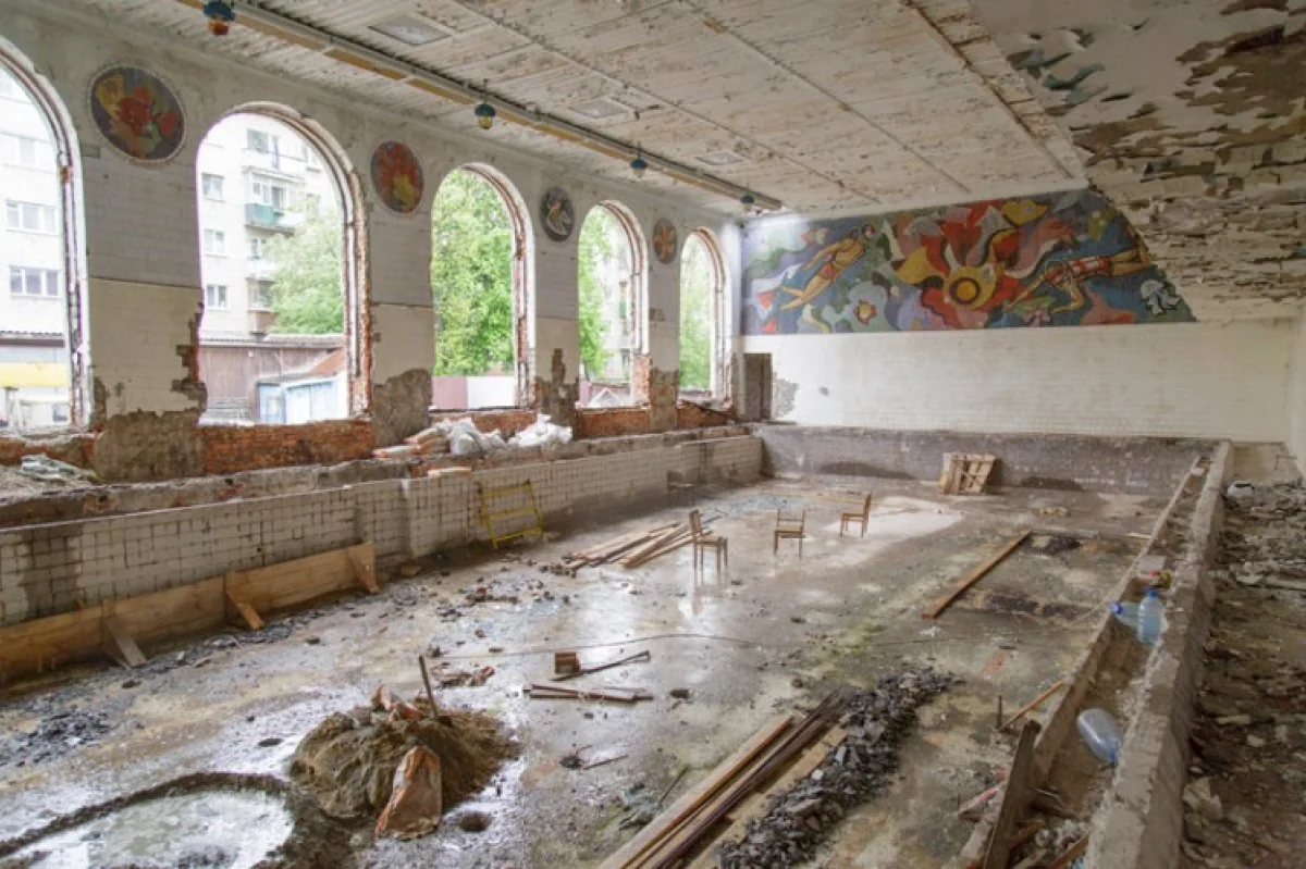 . Рабочие уже сняли окна и часть кровли. Все идет по графику и объект, которому уже более 60 лет должен быть сдан ко Дню города.