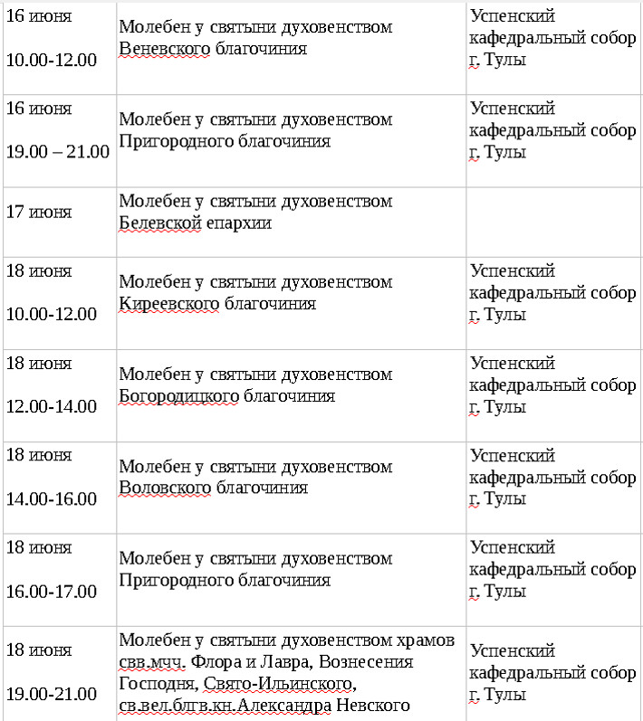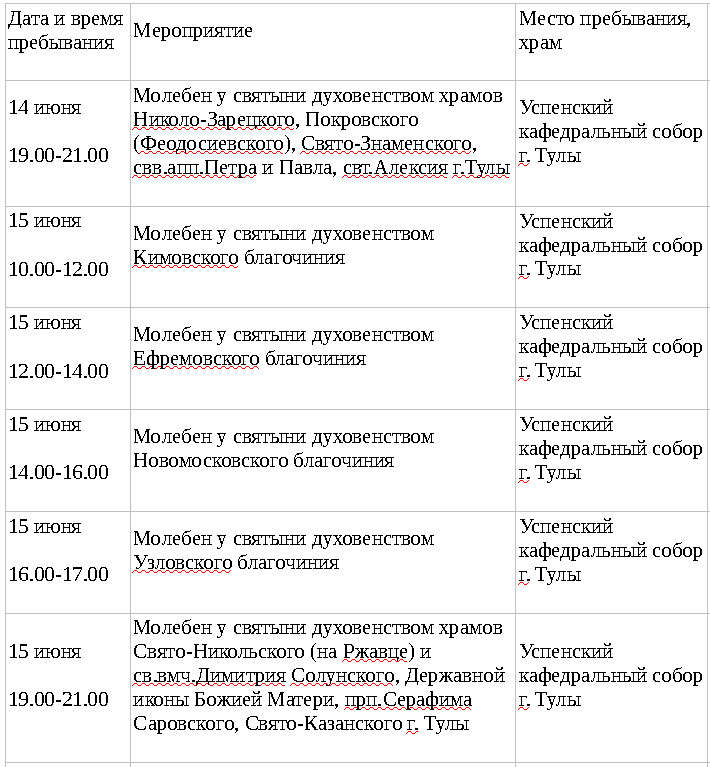 Подробная программа пребывания мощей святого Георгия Победоносца в Туле