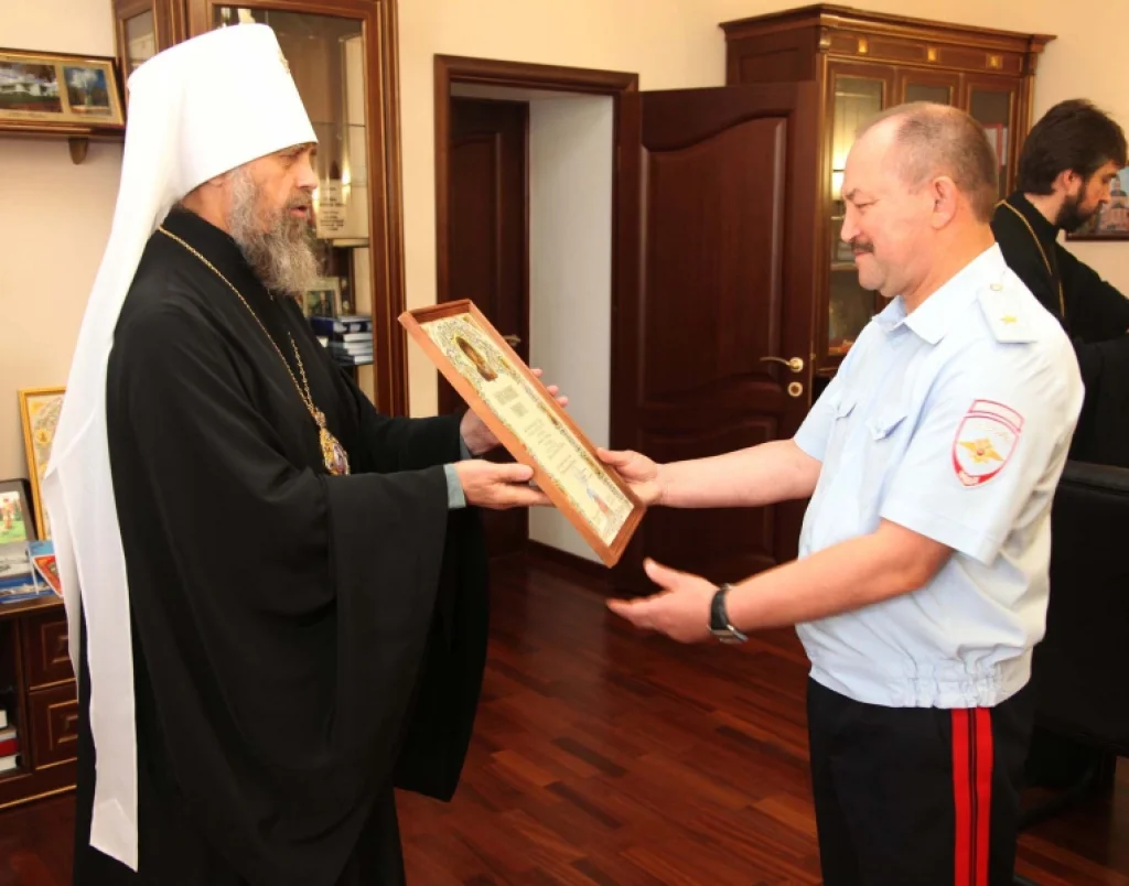 В знак признательности Митрополит передал начальнику УМВД Благословенную пасторскую грамоту и экземпляр Священного Писания, который был издан к 2000-летию крещения Руси.