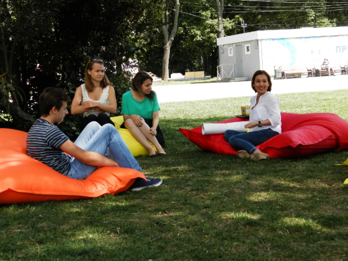 . Посетители ЦПКиО могут отдохнуть на них совершенно бесплатно ежедневно с 10.00 до 20.30. В ночное время пуфики убирают сотрудники парка.