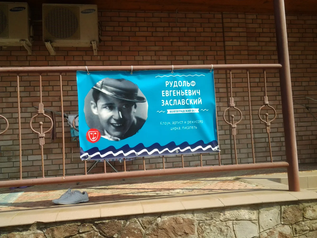 Плакаты с изображениями известных личностей растянуты на фасадах домиков. Помимо изображения они содержат краткую справку о человеке и его достижениях, а также информацию о месте рождения.