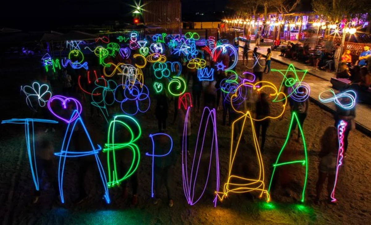 А шестью часами ранее, в полночь, на пляже прошел еще один флеш-моб. Провел его известный фоторепортер Андрей Попов. Он несколько дней вел на форуме образовательные занятия по основам фотосъемки, на одном из которых слушатели попросили его продемонстрировать свои умения. Попов сделал с участниками форума фотографию в жанре "Светографика".