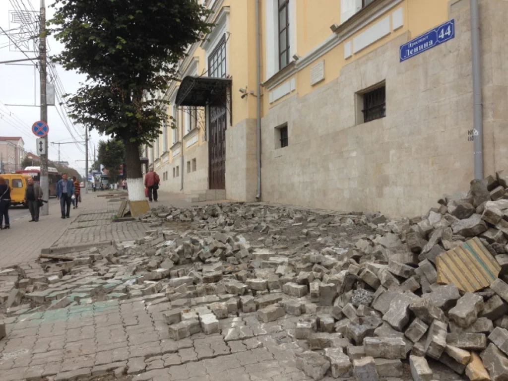 На перекрестке проспекта Ленина и улицы Гоголевская (со стороны бывшего дома офицеров) разобрали тротуарную плитку