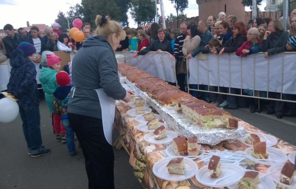 В День города в Туле приготовили огромный бутерброд. Кулинарное шоу проходило на Крестовоздвиженской площади. За процессом приготовления бутерброда наблюдали более 100 человек.