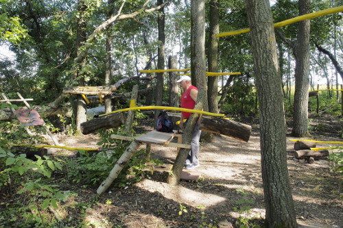 Не смотря на возраст Николай Павлович продемонстрировал использование всех снарядов на себе. Обошел стороной только трапецию — старые спортивные травмы не позволяют делать большие нагрузки на руки. Кстати, трапеция, напоминающая обычную лестницу, пользуется у здешних спортсменов немалой популярностью.