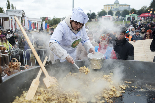 В минувшие выходные в Тамбове прошла Покровская ярмарка. На огромной сковородке диаметром 2,7 метра, изготовленной тульскими мастерами, тамбовчане жарили картошку. Для жарки 150 кг картофеля кулинарам понадобилось 12 литров масла, 12 килограммов лука и 600 граммов соли, сообщает city.tambov.gov.ru.