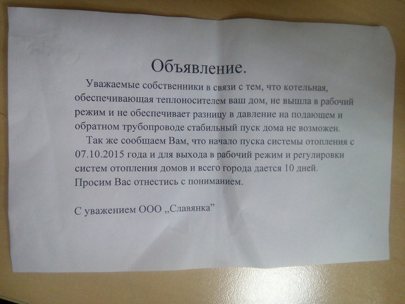 - Батареи едва теплые, - рассказали они. - А сегодня утром на подъезде увидели объявление от нашей управляющей компании. Нас просят отнестись с пониманием к их проблемам. А за что мы платим такие огромные деньги за отопление, чтобы мерзнуть и входить в положение "бедных" жилищников?!