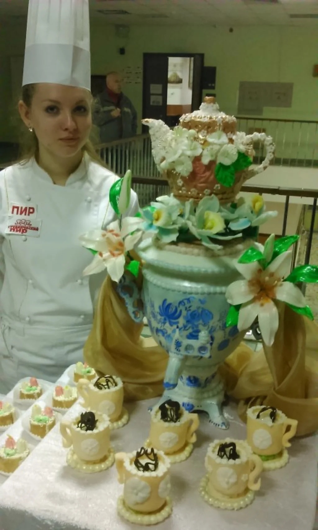Тулячка победила в конкурсе, изготовив большой самовар из сахарной мастики