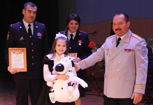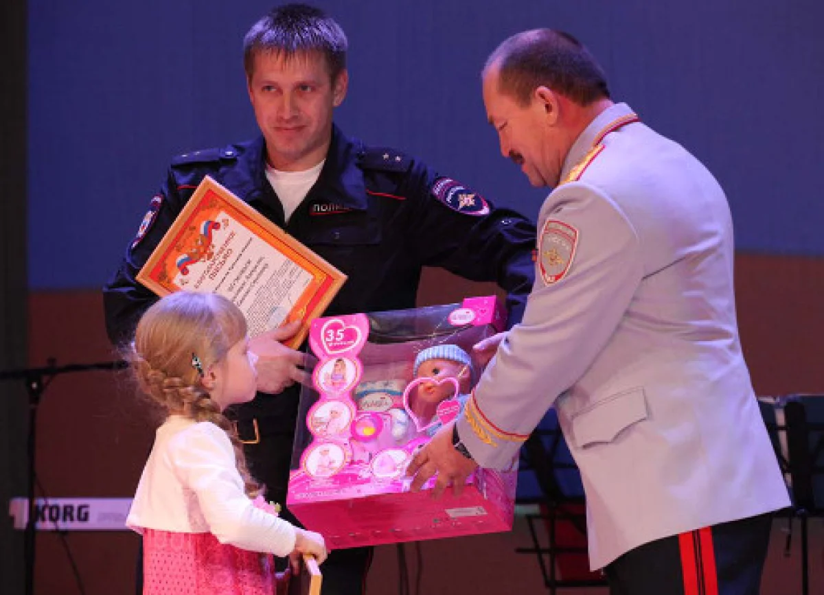 Сергей Галкин вручил подарки и почётные грамоты, а родителям девочек глава регионального Управления МВД вручил благодарственные письма за воспитание детей в духе патриотизма и уважение профессии полицейского.