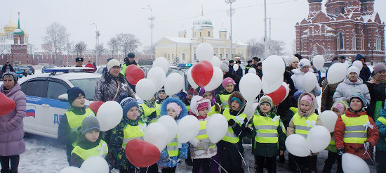 , на главной площади Тулы автомобили, с включенными аварийными сигнализациями выстроились в виде сердца, как символа любви, добра и милосердия и призыва ко всем участникам дорожного движения беречь жизнь, как свою, так и других людей, соблюдая Правила дорожного движения.