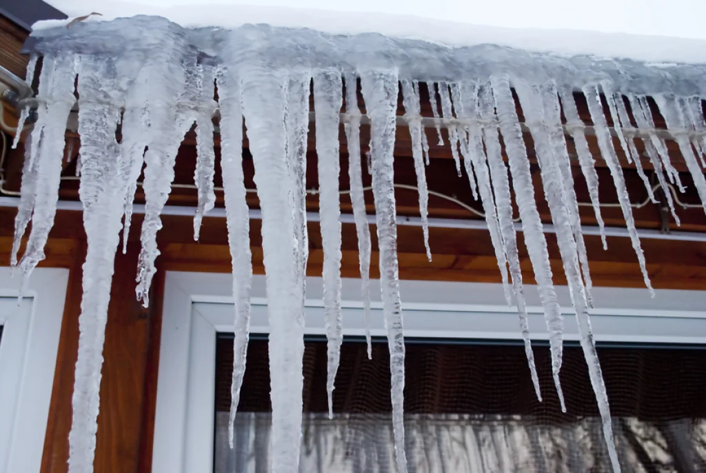 В связи с оттепелью серьезной проблемой являются наледь и сосульки на крышах.