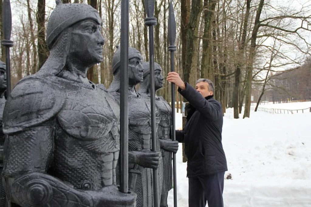 Жители города рассказывают, что раньше у пруда тоже стояли фигуры богатырей, но они были из дерева и разрушились от времени.