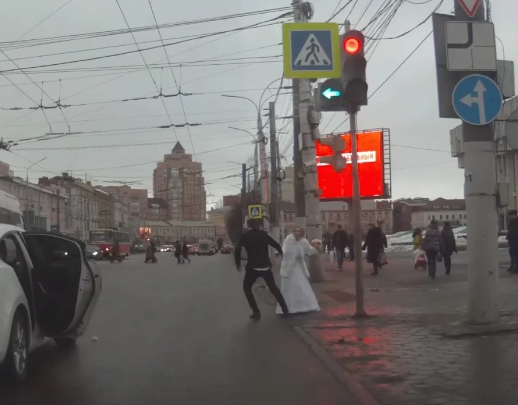 Ссора жениха и невесты произошла прямо на проезжей части, на ул. Советской, и привлекла внимание случайных прохожих и автомобилистов.