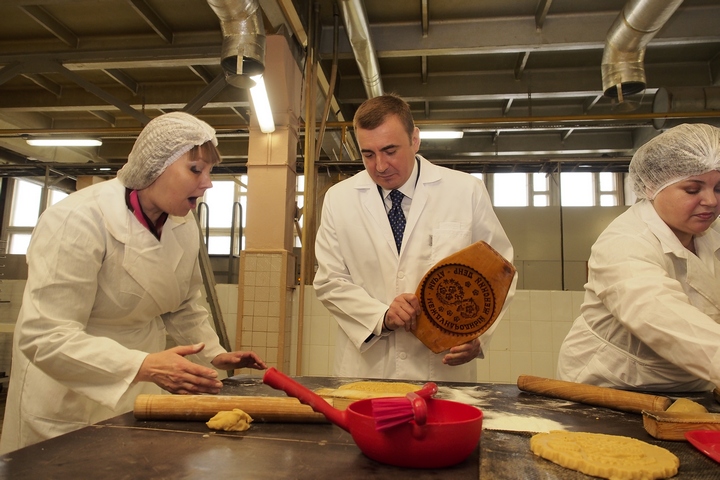 Ему рассказали о процессе производства знаменитого тульского лакомства. Один пряник Алексей Дюмин даже сделал собственными руками.