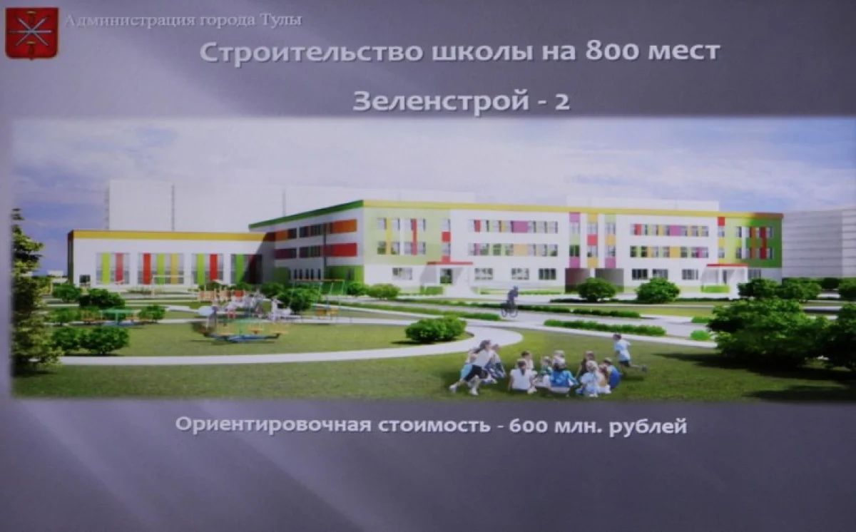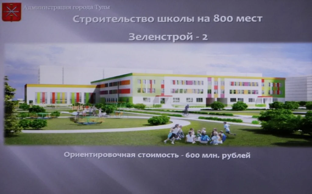 Глава администрации областного центра отметил, что в 2016 году планируется начать реализацию перспективного проекта строительства школы на 800 мест в микрорайоне «Зеленстрой – 2», расположенной в Привокзальном районе города Тулы, общей площадью 27448 кв. метра. Этот объект крайне необходим городу: строящийся микрорайон будет включать 12 жилых домов, а располагающиеся вблизи школы уже полностью укомплектованы.
