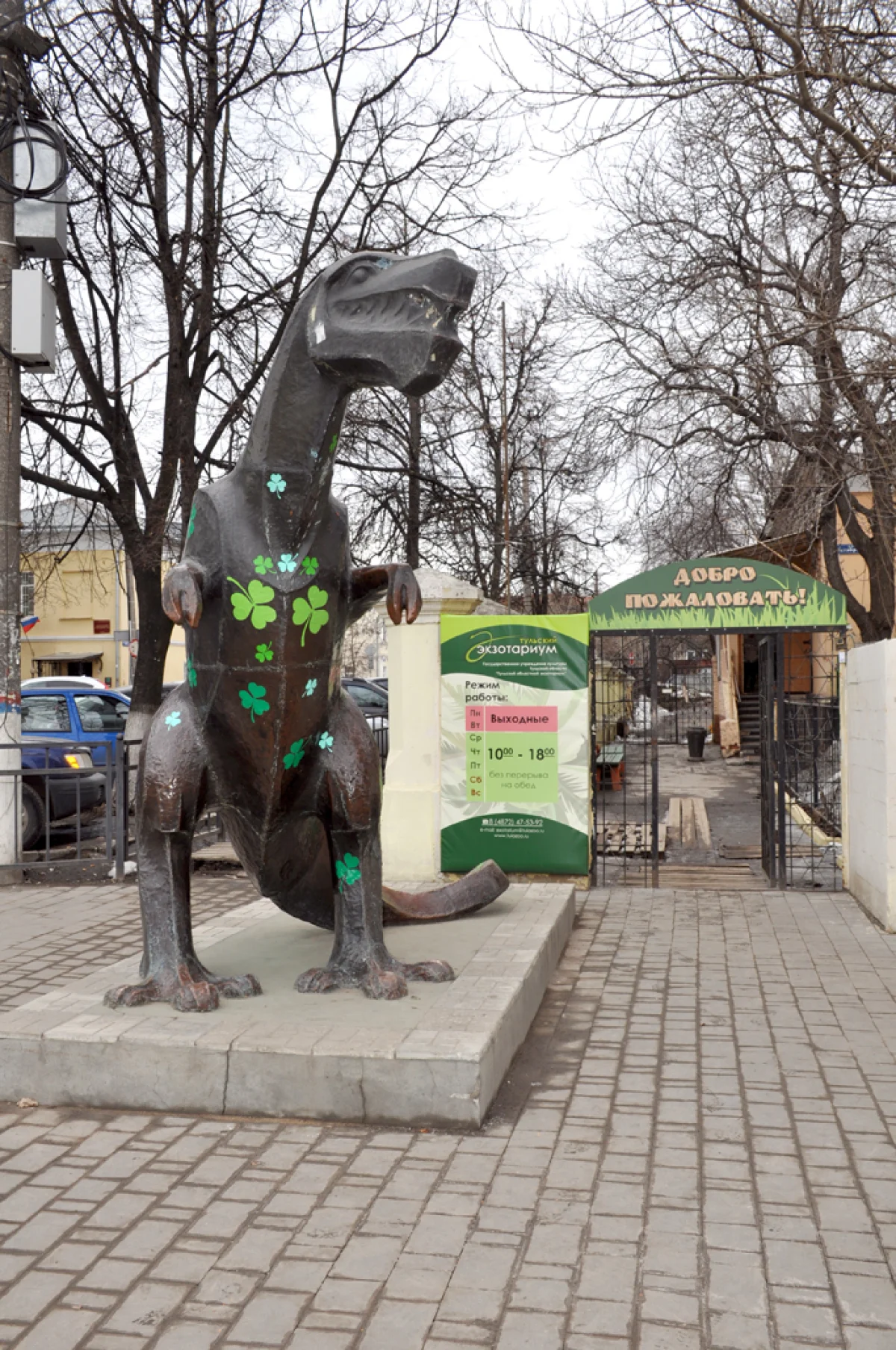 Сотрудники тульского экзотариума украсили памятник динозавру клевером к самому популярному в России кельтскому празднику! Среди традиционных трилистников символа Ирландии есть один с четырьмя листочками. Каждый теперь может приманить удачу, внимательно осмотрев металлического ящера! На время празднования тёща даже поменяет имя с Серпентины на Тину ПАТРИКеевну!