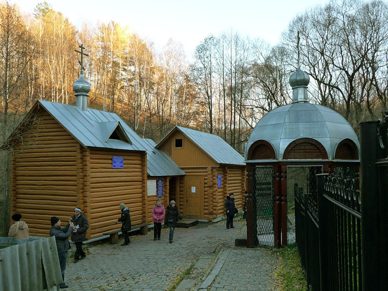 Родник находится под горкой, со всех сторон окружен лесом, а над самим источником установили небольшую часовню.