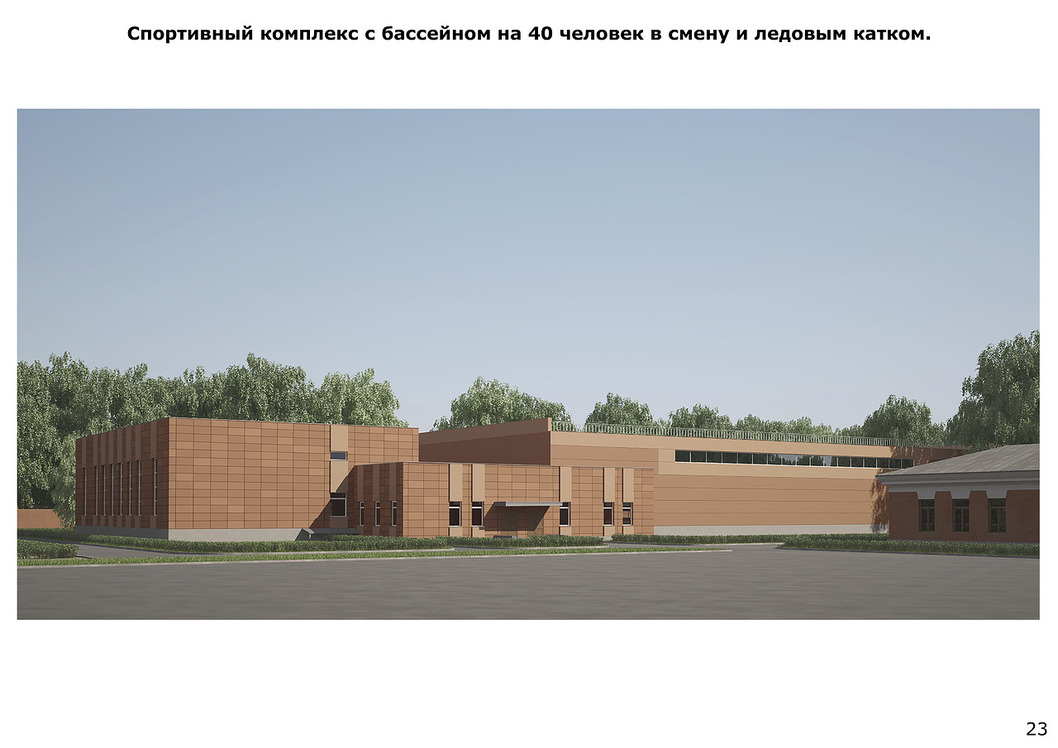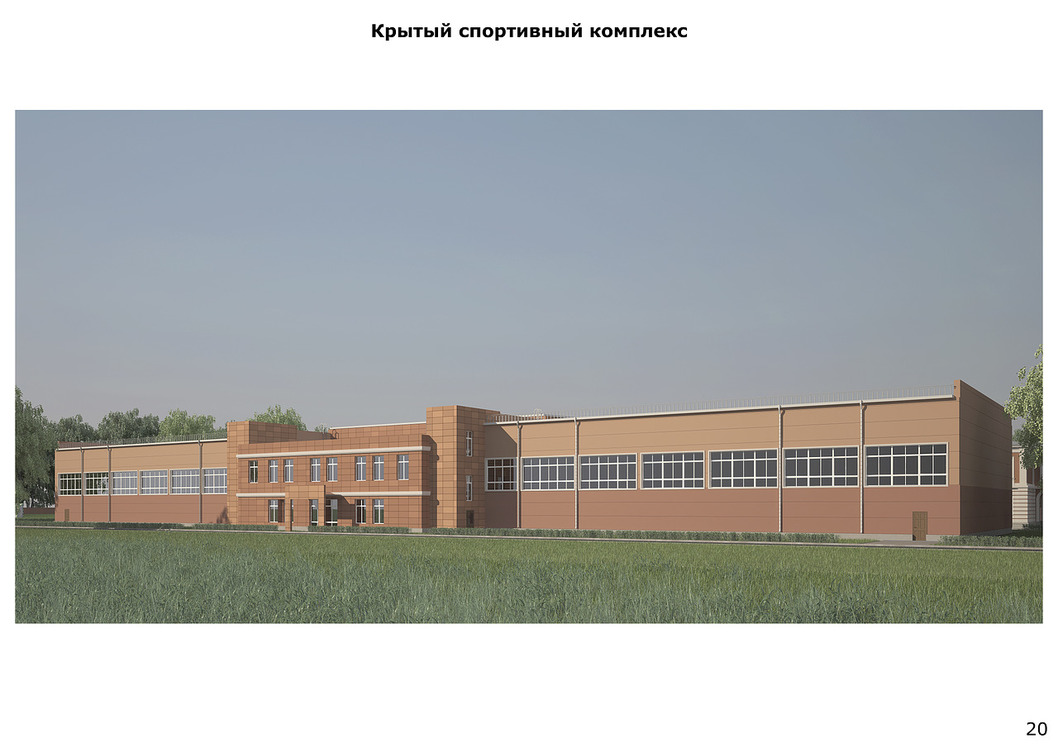 тренажеров и гимнастики, стадион с футбольным полем и трибуной на 620 мест, спальный корпус на 240 мест, крытую