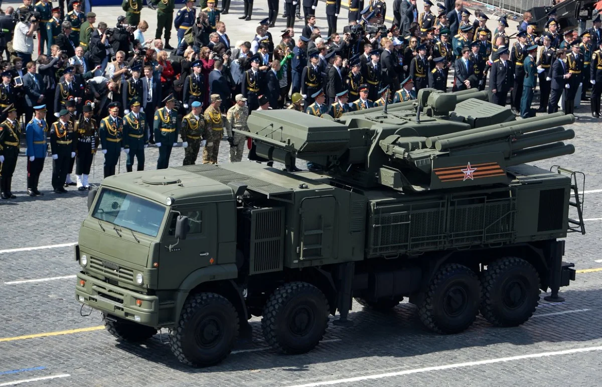 Колонна зенитных ракетно-пушечных комплексов «Панцирь-С» войск Воздушно-космической обороны проехала по Красной площади.