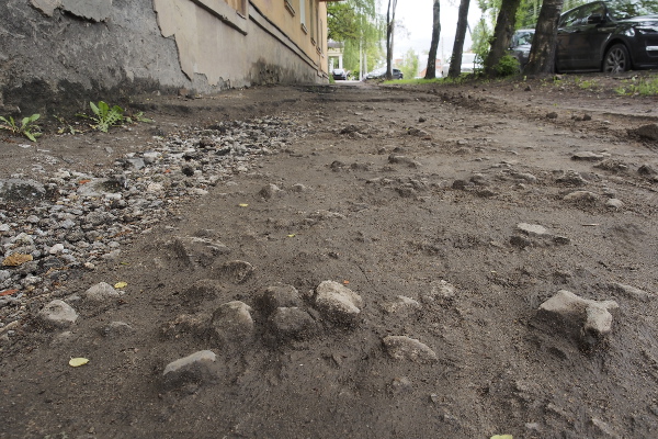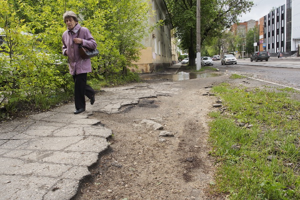 Вот взять к примеру улицу Оружейную, на участке от ул. Болдина до ул. Мира. Лишь десятиметровый кусок тротуара, прилегающий к магазину «Камуфляж», вымощен плиткой. Далее этот «оазис» резко обрывается и начинается полное бездорожье. До ул. Мира тротуар представляет собой сплошную рытвину.