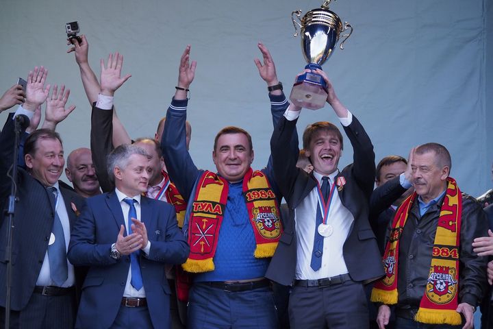 Футболистов поздравил врио губернатора Тульской области - Алексей Дюмин, который также присутствовал на церемонии.