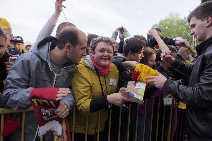 После официальной части состоялась импровизированная автограф-сессия. Все желающие, а точнее те, кто сумел пробиться к ограждению, смогли получить заветные подписи и даже сфотографировать футболистов на память.