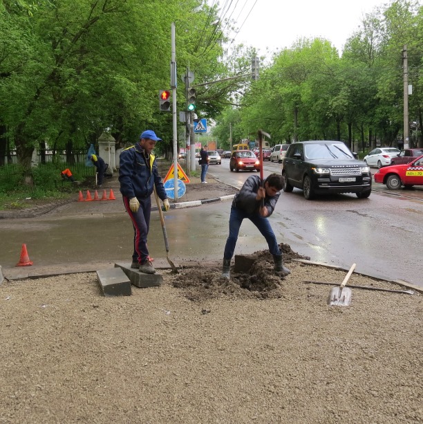 Тротуары ремонтируют на улицах Тимирязева, Демьянова, Оружейной.