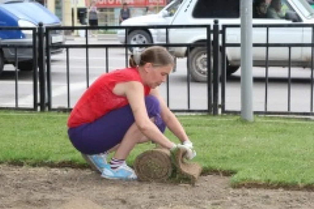 За сегодняшний день запланировано уложить 400 квадратных метров газона, а всего – двадцать тысяч квадратных метров будет уложено на центральных улицах города. Работы по благоустройству будут вестись собственными силами с целью экономии средств.