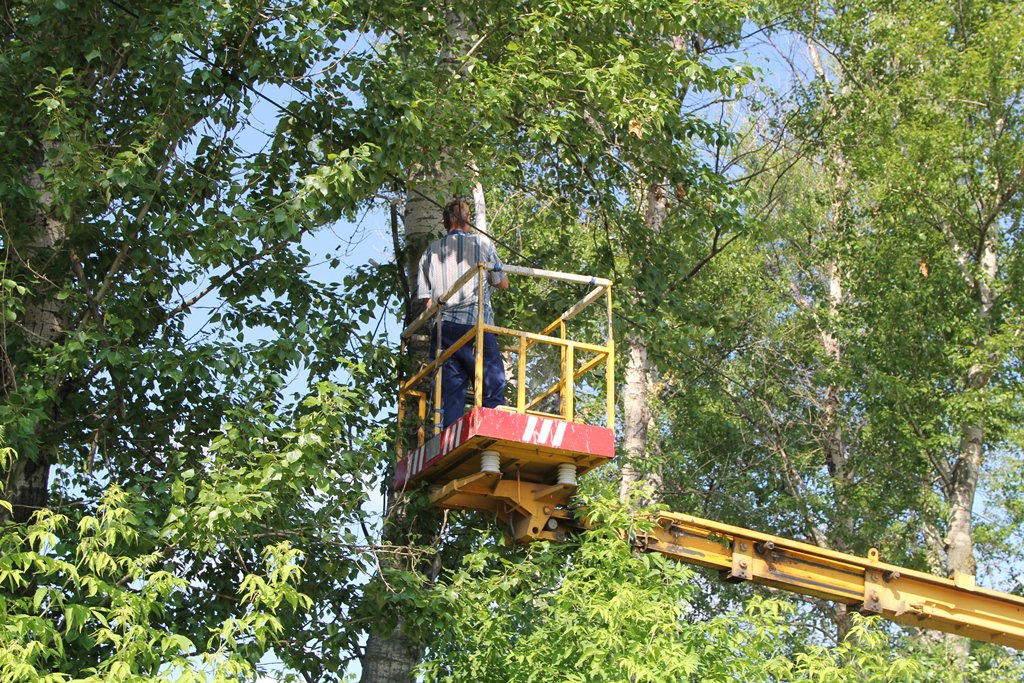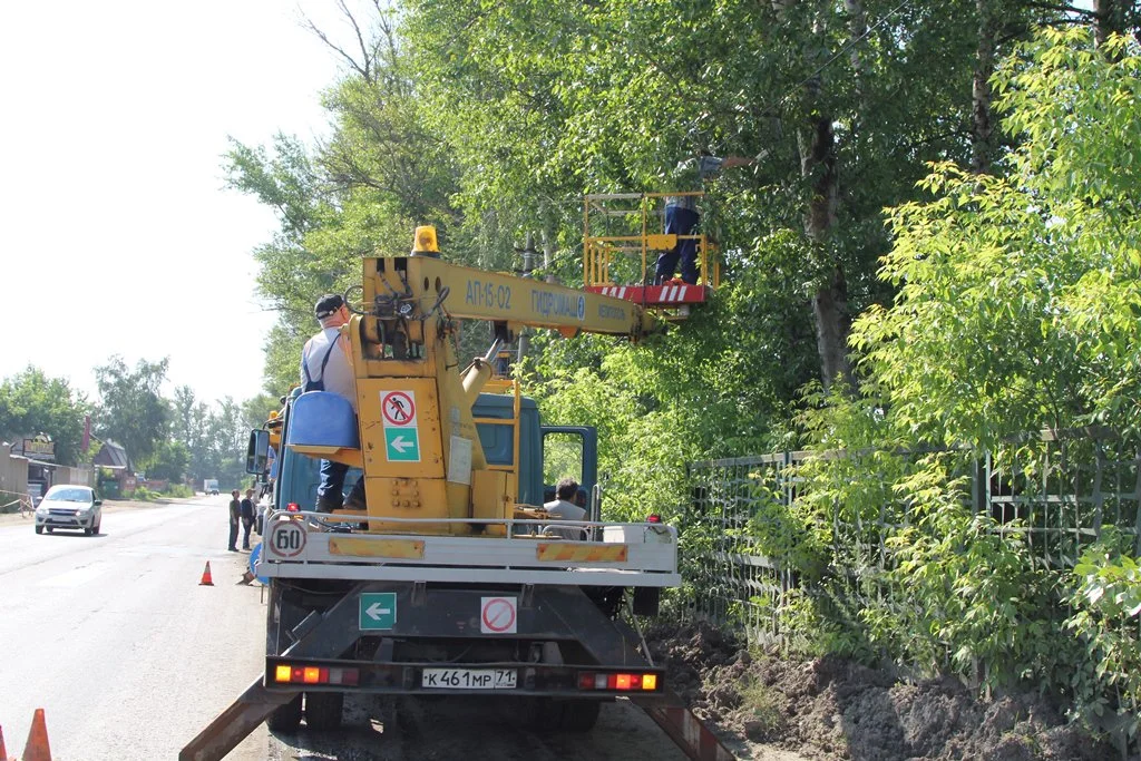 МКП "Тулагорсвет" выполняет опиловку деревьев на Алексинском шоссе для последующего монтажа 22 опор освещения.