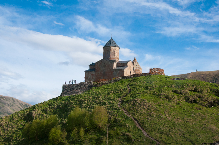 Маршрут пролегает мимо монастыря Цминла Самеба, расположенном на высоте 2 170 м. Это довольно популярная достопримечательность в Грузии и приятный бонус к нашему восхождению.