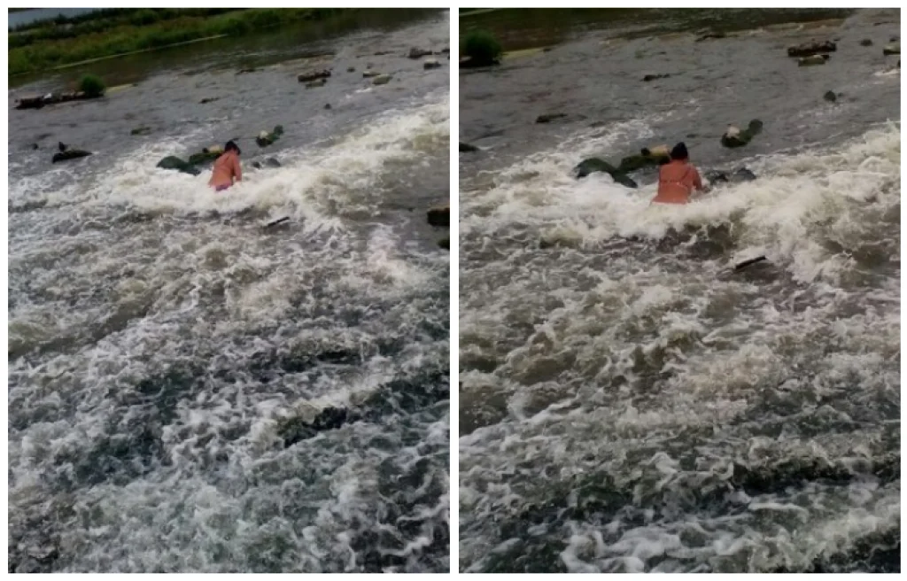 Отважная тулячка устроила гидромассажные процедуры на плотине в Упе