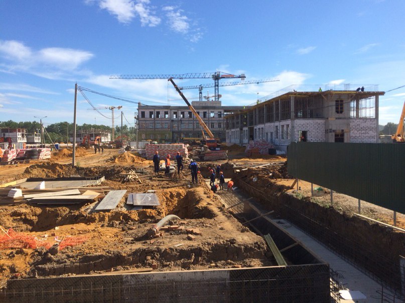 Несмотря на приезд высоких гостей, работа на стройке не прекращается. Уже готовы 3 этажа жилого корпуса. 20 августа сюда заселятся иногородние курсанты.